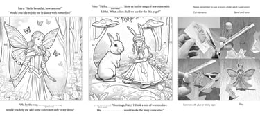 _dialogues on each illustration page to actively participate in coloring and express creativity while enjoying the magical world of the Fairy Forest,